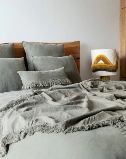 Plaid en lin & coton finitions frangées vert 150x180cm