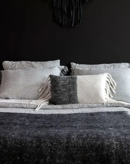 Taie d'oreiller en lin lavé et coton grise 65x65cm