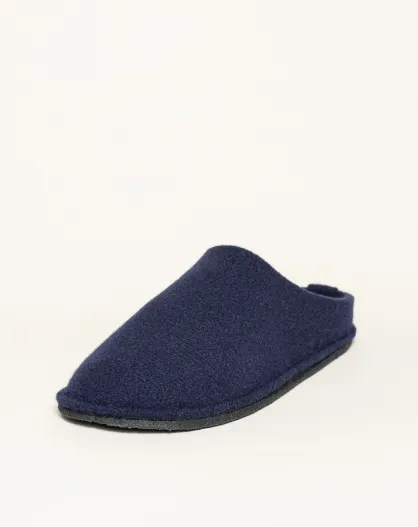 Chaussons charentais fourrés en Laine bleu marine