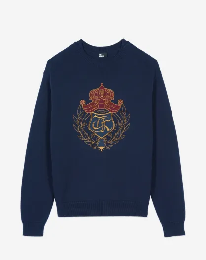 Pull Blason à rayures en laine et cachemire blanc et bleu