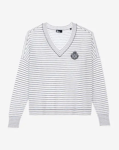 Pull Blason à rayures en laine et cachemire blanc et bleu