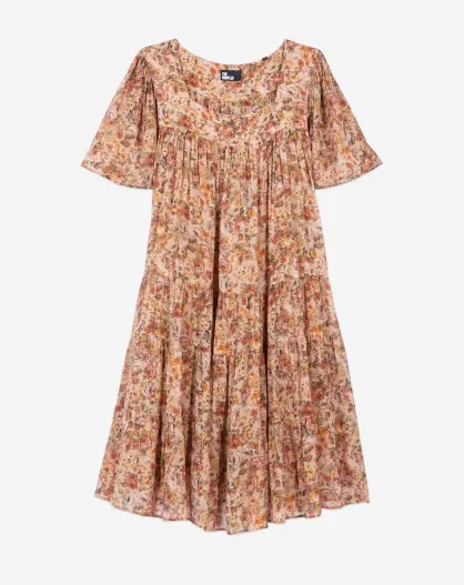 Robe courte imprimé fleuri marron