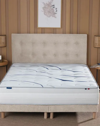 Ensemble matelas mémoire de forme MEMORIA + sommier + tête de lit, chenille bouclettes Crème - 160x200 cm