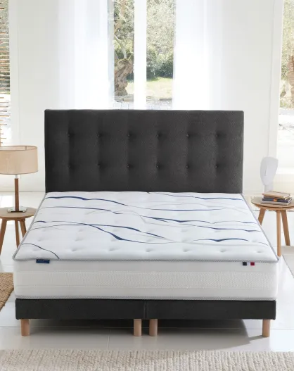 Ensemble matelas mousse HD NUVIA + sommier, chenille bouclettes Gris anthracite - 160x200 cm