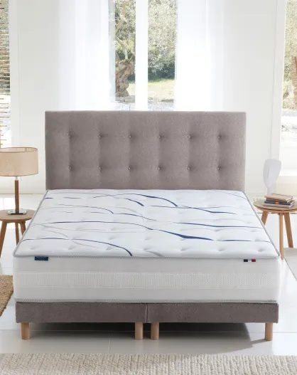 Ensemble matelas mémoire de forme ALTEA + sommier + tête de lit, chenille bouclettes Gris clair - 180x200 cm