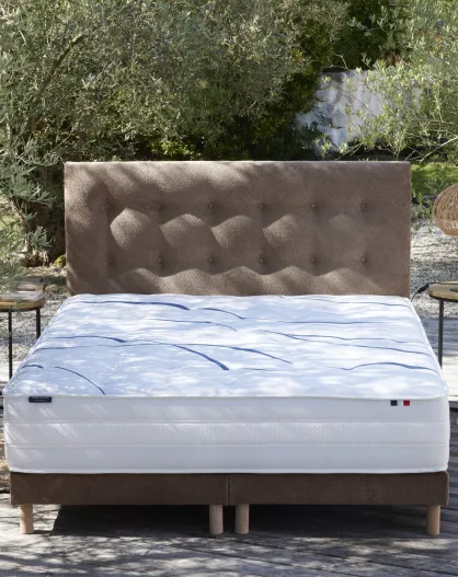 Ensemble matelas mousse ELYSIA + sommier + tête de lit, chenille bouclettes Moka - 160x200 cm