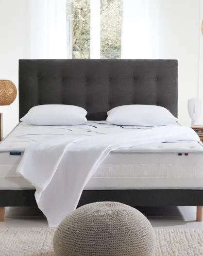 Sommier tapissier Eden gris anthracite, bois massif, chenille bouclettes - 140x190 cm