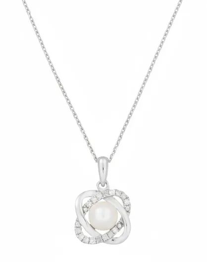 Pendentif Vague Sublime Diamant 0.12 ct & Perle or blanc