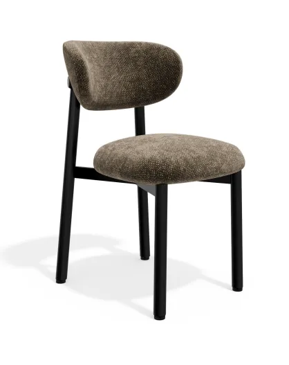 2 Chaises LUMI velours chenillé brun expresso pieds noirs – 49x57.5x77cm