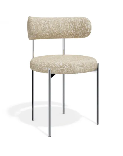 2 Chaises ADELE tissu tramé à motifs beige pieds chrome - 52x45.5x76.5 cm