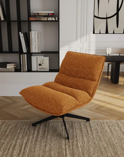 Fauteuil pivotant pied noir NAPA tissu tramé toucher doux terracotta – 81x95x90cm