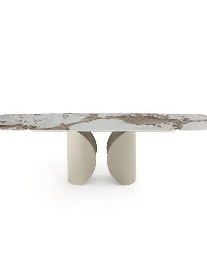 Table à manger NYMPHÉA aspect travertin pied bronze – 180x90x77 cm