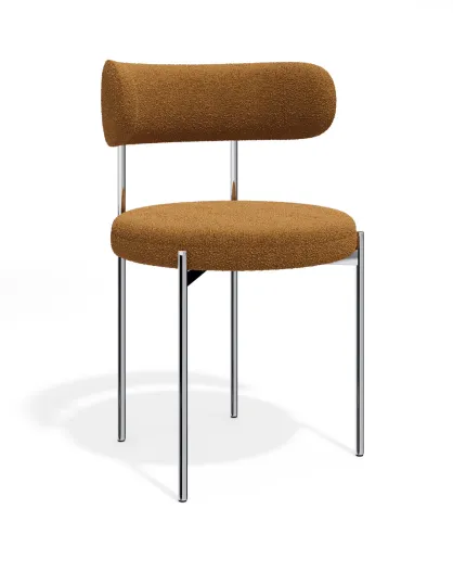 2 Chaises ADELE tissu bouclette moutarde pieds chrome – 52x45.5x76.5 cm