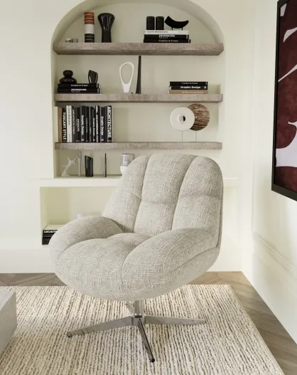 Fauteuil pivotant pied chrome REV velours tramé crème – 76x85x91cm