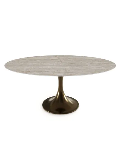 Table à manger NYMPHÉA aspect travertin pied bronze – 180x90x77 cm