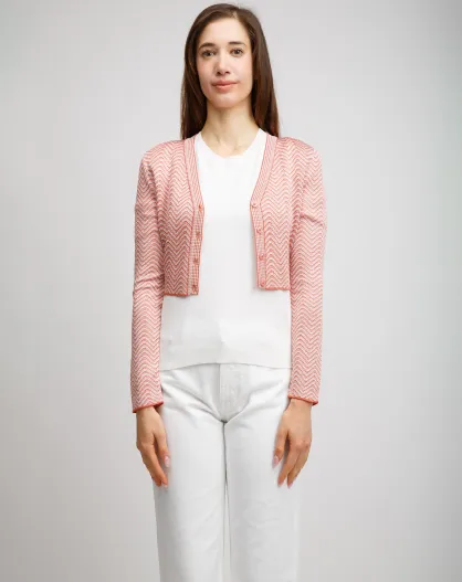 Cardigan à boutons Elwen rayures rose saumon et rose poudre