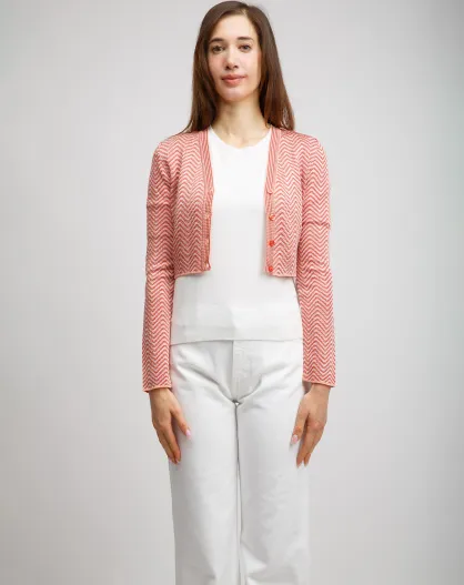 Cardigan à boutons Sybèle rayures aux tons rouges