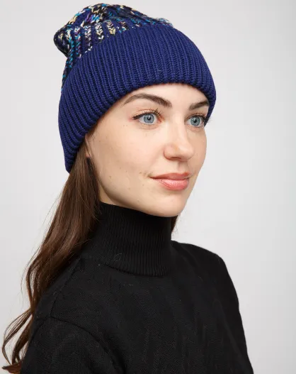 Bonnet L3 Fily pompon fausse fourrure bleu foncé