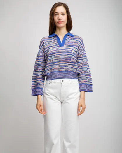 Pull Ilario rose multicolore, bleu, avio, blanc