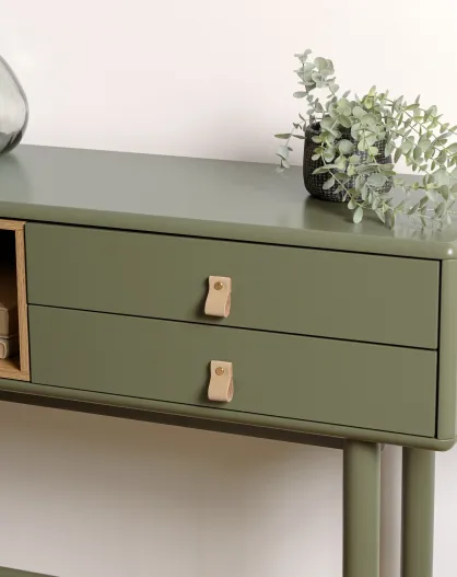 Console verte 3 tiroirs et 1 niche en bois naturel