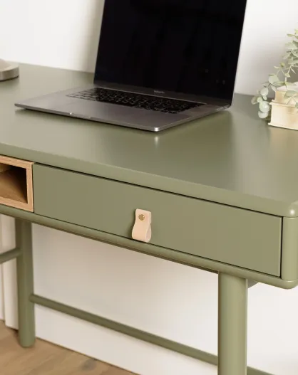 Bureau vert 2 tiroirs et 1 niche en bois naturel