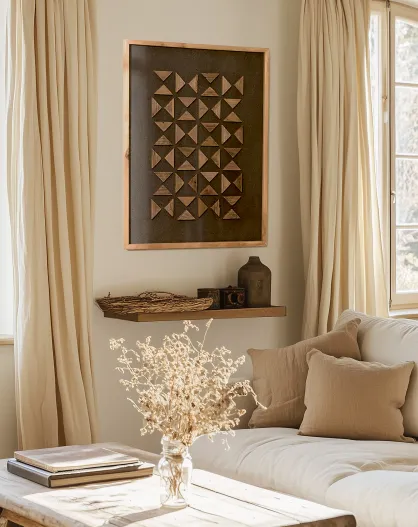 Décoration murale 62x82cm motifs géométriques Pin recyclé