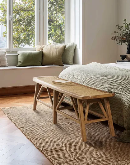 Banc 1 place en bois de mindi et rotin naturel