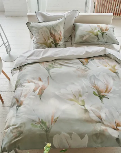 Housse de couette imprimée en satin de coton Yulan magnolia