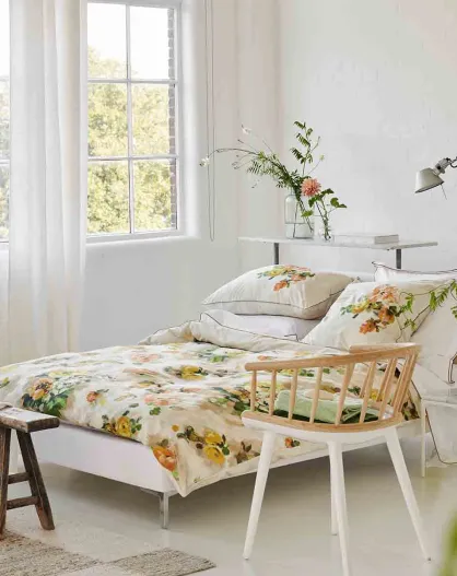 Housse de couette imprimée en satin de coton Giardino di rose acacia