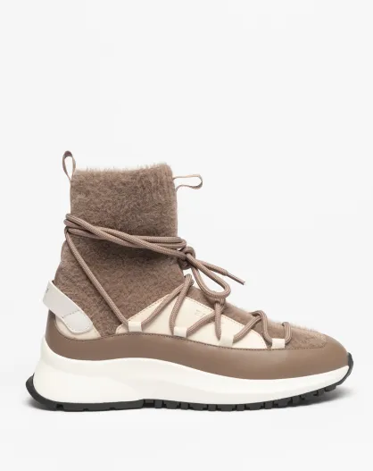 Baskets en Velours de Cuir Maurica taupe foncé - Talon 8 cm