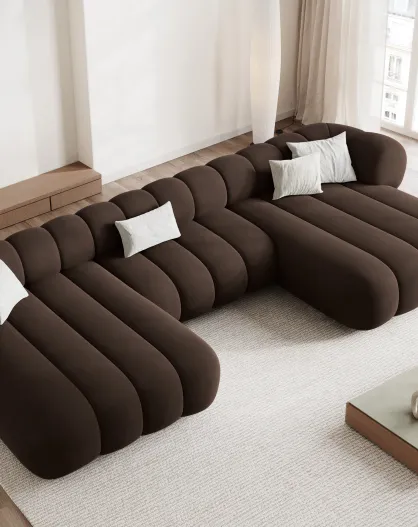 Canapé Panoramique en velours Koge 6 Places chocolat - 348x165x70 cm
