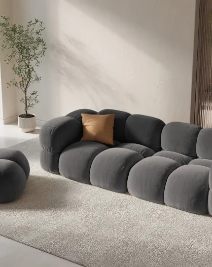 Canapé velours Loretto 4 Places gris - 250x100x68 cm