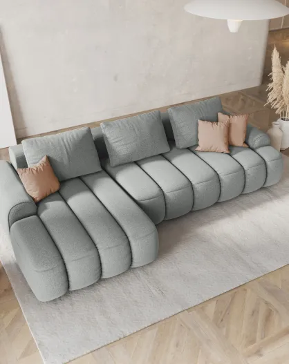 Canapé d'angle gauche convertible avec coffre Kimi 3 Places gris clair - 275x142x84 cm