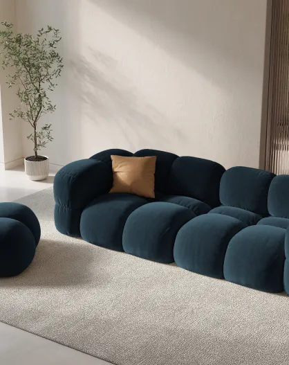 Pouf velours Koge 1 Place pétrole profond - 95x95x40 cm