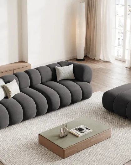 Pouf velours Hebe 1 place Gris Foncé - 86x60x43