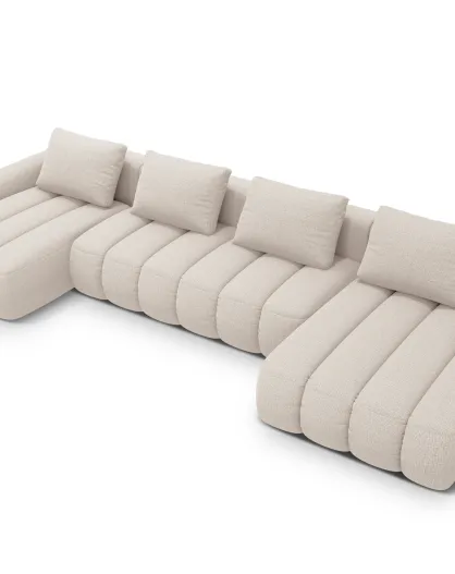 Canapé D'Angle Panoramique droit Ouvert Loretto 5 Places beige - 345x250x68 cm