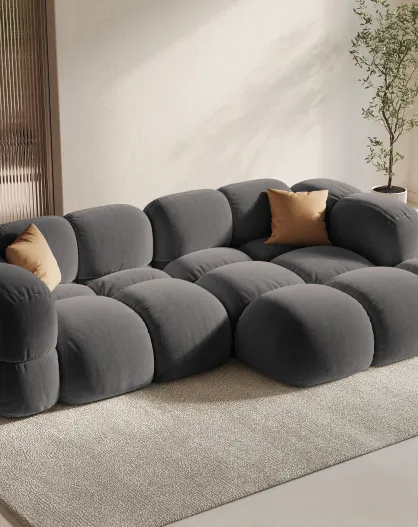 Canapé D'Angle Panoramique (Côté droit) velours Loretto 5 Places gris - 345x250x68 cm