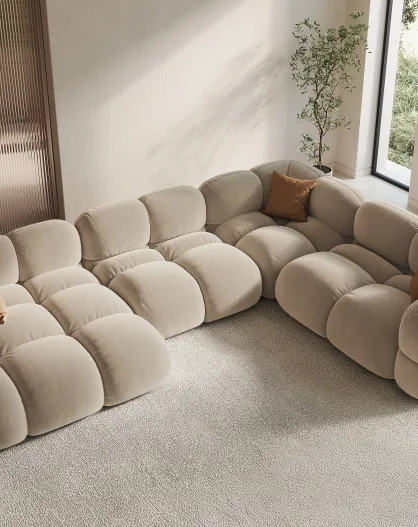 Canapé Panoramique (Côté Gauche) Velours Lyna 6 Places beige - 355x225x72 cm