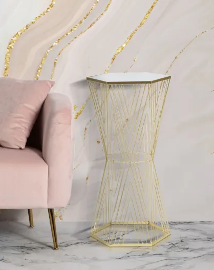Table d'appoint Lignes dorée - 40x35x80 cm