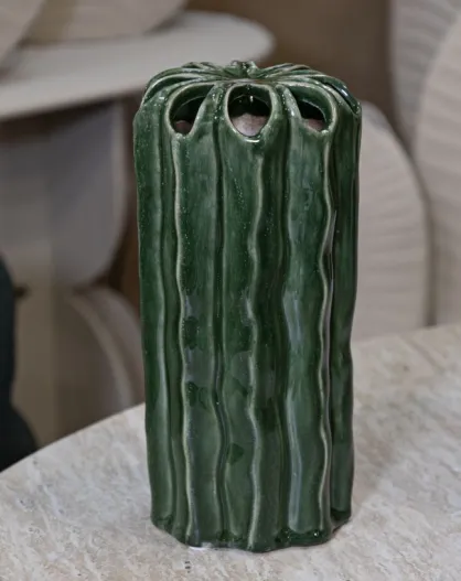 Vase Cactus multi trous vert - 11,5x23,5 cm