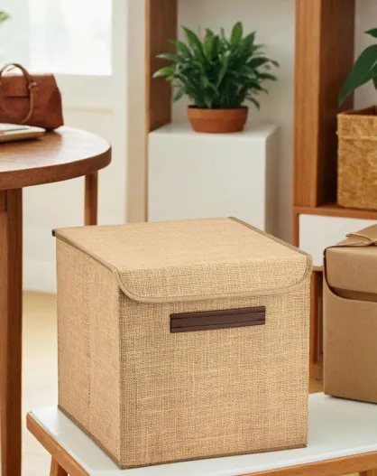 Boîte de rangement en jute Naturel - 30x30x30 cm