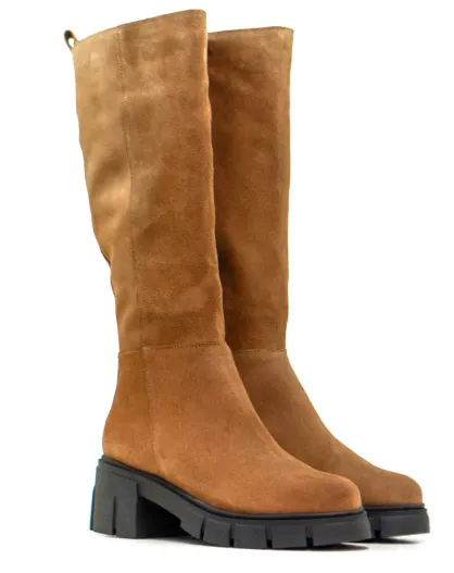 Bottes F-4308 en cuir sauvage brun clair - Talon 8 cm