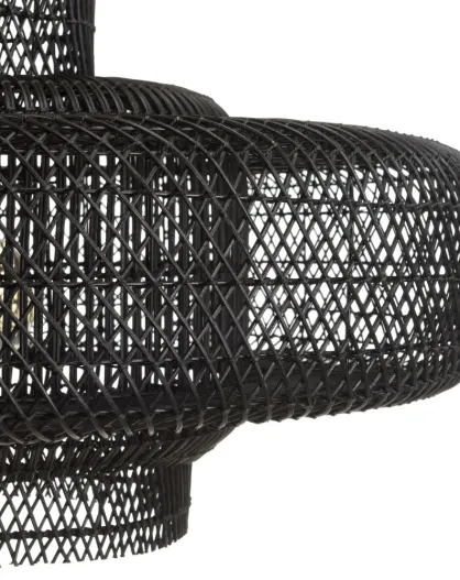 Suspension double 90x90cm en rotin couleur noire et teck