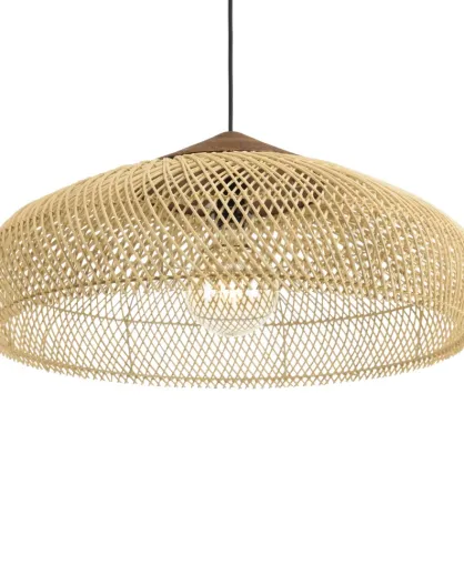 Suspension 65x65cm en rotin couleur naturelle et teck recyclé
