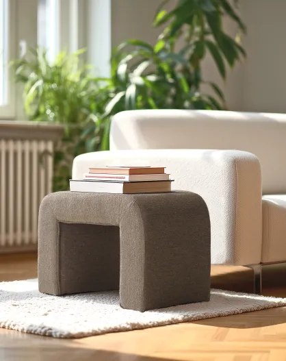 Pouf Bouclé Lola marron - 75x75x36 cm