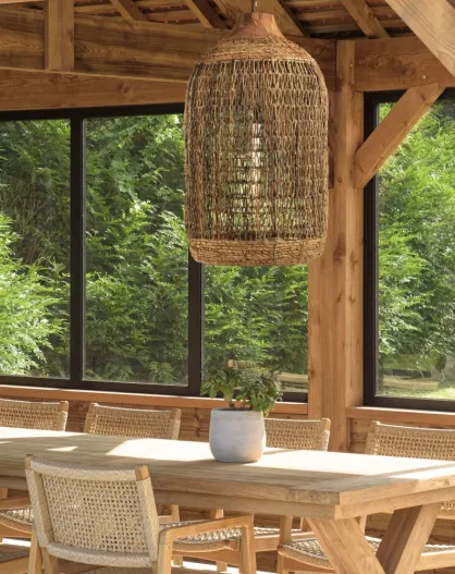 Suspension cymbale 60x60cm en fibre de coco et teck recyclé