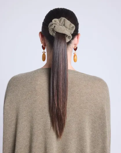 Chouchou cheveux en cachemire vert khaki