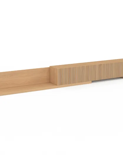 Meuble TV extensible Movena effet lattes bois - 360x32x35 cm