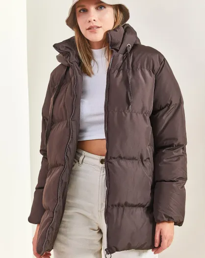 Manteau en daim avec poches en fausse fourrure et col châle brune
