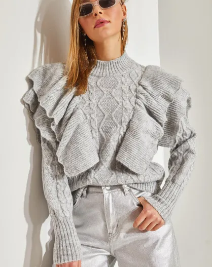 Pull en maille torsadée ajourée gris